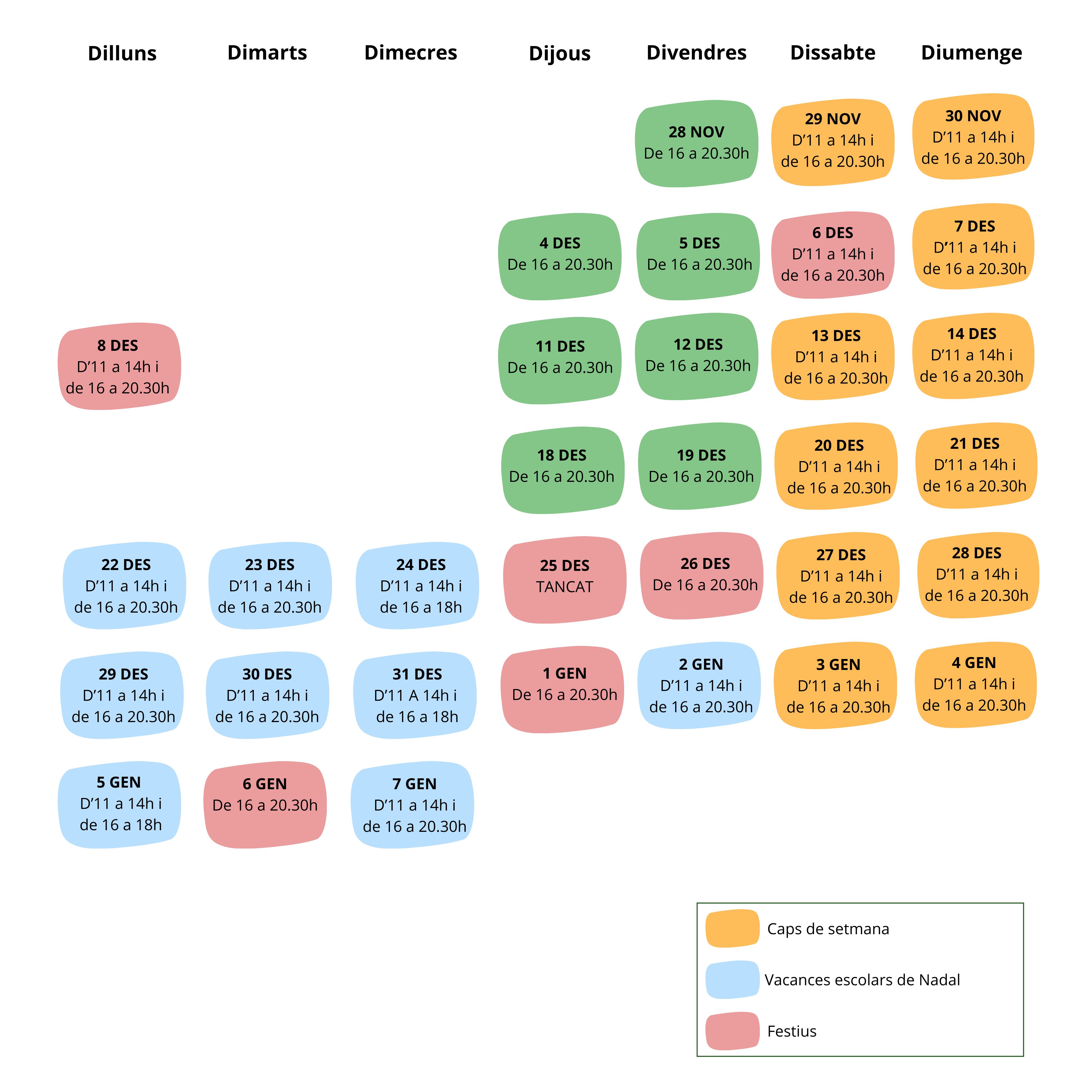 ⏰Horaris especials segons festius i vacances escolars